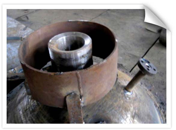 我公司生產(chǎn)的設(shè)備有很多封頭的頂部都焊有加工好帶螺紋的接管,因螺紋凸出在外,在生產(chǎn)中,稍不注意,就會把螺紋碰壞,把接管碰彎,造成報廢,而導(dǎo)致返工。如何保護接管和螺紋,已成為生產(chǎn)中的一道工序,不銹鋼分廠要求職工在生產(chǎn)中嚴格按照生產(chǎn)紀律的有關(guān)規(guī)定進行生產(chǎn),在焊有螺紋接管或焊有接管的部位,外加點焊一個凸圈,高于接管,加以保護,這樣以來,既保障了生產(chǎn)進度,也確保了產(chǎn)品質(zhì)量,取得了一舉兩得的好效果。