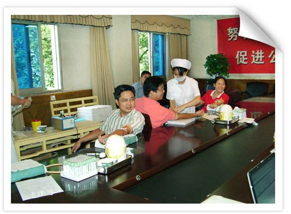 中秋節(jié)到了,湘東化機開展今年第二次無償獻血活動,以濃濃的愛心向社會獻上了一份特殊的禮物。9月11日,來自全公司各單位的近70名員工踴躍參加這次無償獻血活動,有許多員工是多次參加無償獻血的員工,他們和采血站的護士們一見如故,親切地攀談著,望著這些充滿朝氣、樂于奉獻的員工們,采血站的護士們由衷的感動,她們說,一個真正健康向上的企業(yè),才會年年重視并支持這種社會公益活動,特別是中秋佳節(jié)集體組織獻愛心活動,真是人圓月圓心更圓哪!截止到今天,公司已連續(xù)八年開展無償獻血活動,并多次獲得“株洲市無償獻血先進單位”的榮譽稱號。