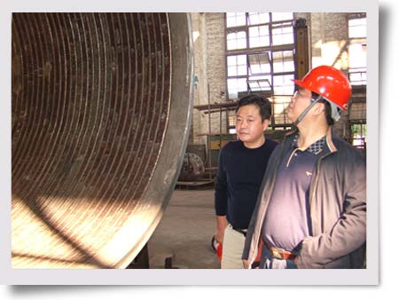 該項目是我公司2007年11月份與神華包頭簽訂的,設備總重達152噸,直徑3.1米,板厚90+6,是進口SA387材料,共2臺。我公司承接任務后,十分重視,常務副總經理林德晃親任項目經理,選調技術、質檢、生產工段組成項目部,對技術難點、生產難點、質量控制難點都作了詳細的分析,拿出了攻克難點的方案,制定出了生產作業(yè)計劃和進度安排。神華包頭和五環(huán)科技的負責人就我方提出的方案和生產計劃進行了交流,并表示滿意。
