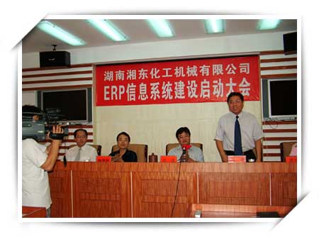 2007-06-29 為有效促進(jìn)企業(yè)管理的現(xiàn)代化、科學(xué)化,進(jìn)一步提升公司的綜合競(jìng)爭(zhēng)力,湖南湘東化工機(jī)械有限公司于去年啟動(dòng)了ERP系統(tǒng)的前期準(zhǔn)備工作,今天上午,根據(jù)ERP項(xiàng)目的進(jìn)展情況,正式啟動(dòng)ERP信息系統(tǒng)建設(shè)。 ERP(企業(yè)資源規(guī)劃)是一種企業(yè)全新管理理念和管理工具,強(qiáng)調(diào)對(duì)企業(yè)的內(nèi)部甚至外部的資源進(jìn)行優(yōu)化配置,提高利用效率。此次我公司斥資300多萬(wàn),首期投資150萬(wàn)元,進(jìn)行信息化建設(shè),依照“整體規(guī)劃,分布實(shí)施,重點(diǎn)突破,效益驅(qū)動(dòng)”的原則,分階段、按步驟地實(shí)施財(cái)務(wù)、物流、人力資源、生產(chǎn)管理、物料需求計(jì)劃等核心模塊建設(shè),對(duì)企業(yè)管理進(jìn)行流程梳理,促進(jìn)公司經(jīng)濟(jì)效益的最大化。圖為和佳軟件公司陳佳總經(jīng)理不遠(yuǎn)千里從北京總部蒞臨我公司出席啟動(dòng)儀式。