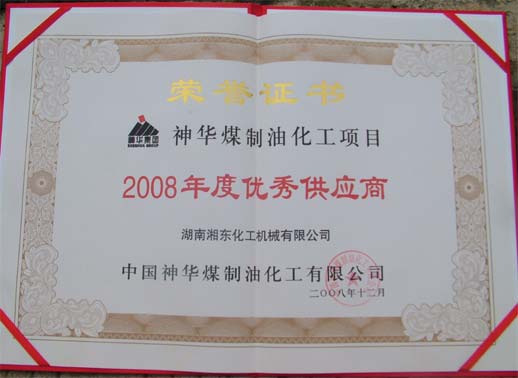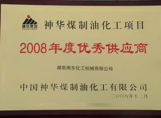 5月25日,從北京中國神華集團(tuán)傳來喜訊,我公司獲得中國神華煤制油化工項(xiàng)目2008年度“優(yōu)秀供應(yīng)商”稱號(hào)。