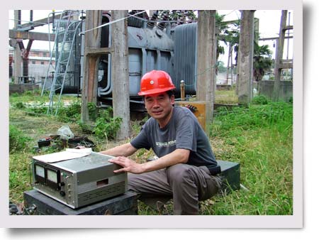 圖為機(jī)安處電工正在檢測(cè)泄漏電流的現(xiàn)場(chǎng)。