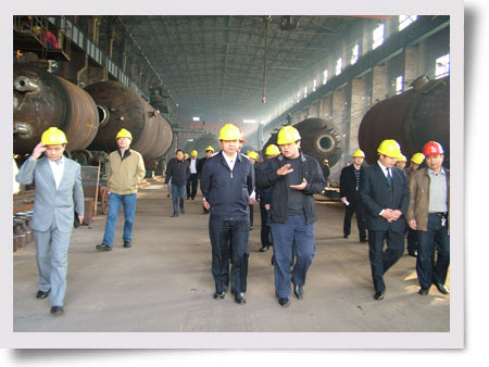 11月25日,陳肇雄副省長在省直屬機(jī)關(guān)單位有關(guān)領(lǐng)導(dǎo)和中共株洲市委書記陳君文、中共攸縣縣委書記鄺鄒飛、攸縣人民政府縣長胡湘之的陪同下,來到湖南湘東化工機(jī)械有限公司視察工作。 一到湘東化機(jī),陳肇雄直接深入企業(yè)生產(chǎn)現(xiàn)場,一邊視察生產(chǎn)情況一邊認(rèn)真聽取湘東化機(jī)董事長兼總經(jīng)理蘇成的工作匯報(bào)。 在全球金融危機(jī)的沖擊下,湘東化機(jī)推進(jìn)科技創(chuàng)新,克服流動(dòng)資金不足等困難,2008年完成工業(yè)總產(chǎn)值3.5億元,同比增加21%,到今年10月份完成工業(yè)總產(chǎn)值2.78億元,同比增加11%。繼2007年獲得湖南省高新技術(shù)企業(yè)、高新技術(shù)產(chǎn)品“雙高”認(rèn)證后,今年11月份再次被評(píng)為湖南省第二批國家高新技術(shù)企業(yè)。 陳肇雄在充分了解企業(yè)的狀況后,對(duì)企業(yè)走新型工業(yè)化道路發(fā)展以及取得的成績給予充分的肯定。同時(shí)要求企業(yè)要進(jìn)一步加大自主知識(shí)產(chǎn)權(quán)保護(hù)工作力度,爭創(chuàng)品牌產(chǎn)品;進(jìn)一步加大技術(shù)儲(chǔ)備,提升企業(yè)裝備;進(jìn)一步擴(kuò)大總體市場,提高企業(yè)綜合競爭力;正確應(yīng)對(duì)金融危機(jī),企業(yè)要繼續(xù)保持發(fā)展勢頭。(王慧卉)