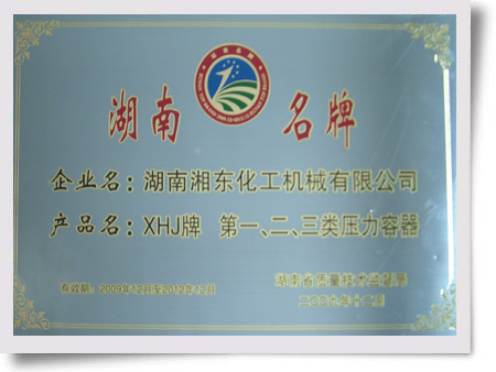 2009年12月,湖南湘東化工機(jī)械有限公司的產(chǎn)品名“XHJ牌,第一、二、三類壓力容器”被湖南省質(zhì)量技術(shù)監(jiān)督局授予“湖南名牌”稱號。(王慧卉)