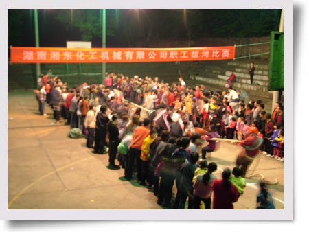 2010年4月23日晚,湖南湘東化工機(jī)械有限公司舉行男女職工混合拔河比賽,旨在培養(yǎng)員工的團(tuán)隊(duì)精神,營(yíng)造和諧企業(yè)團(tuán)隊(duì),增強(qiáng)企業(yè)的凝聚力和戰(zhàn)斗力。 多年來(lái),湘東化機(jī)注重加強(qiáng)企業(yè)精神和企業(yè)文化建設(shè),豐富廣大職工業(yè)余文體生活,堅(jiān)持每季度至少舉行一次文體活動(dòng),投資20余萬(wàn)元資金購(gòu)置健身器材并在生活區(qū)建設(shè)3個(gè)健身場(chǎng)所,增強(qiáng)職工體質(zhì),充分調(diào)動(dòng)職工工作熱情。 拔河比賽在一片熱鬧聲中拉開了帷幕,8個(gè)隊(duì)120名隊(duì)員參加比賽,經(jīng)過(guò)激烈的角逐,容器分會(huì)取得了桂冠。(王慧卉)