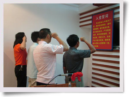 7月1日下午,湖南湘東化工機(jī)械有限公司舉行新黨員入黨宣誓儀式,新黨員在黨旗下莊嚴(yán)宣誓,“我志愿加入中國共產(chǎn)黨。。。。。!。目前,湘東化機(jī)共有黨員598人,其中,具備大專以上文化黨員136人,生產(chǎn)一線黨員110人。 湘東化機(jī)始終把基層黨組織建設(shè)作為組織工作重點(diǎn),圍繞“深入學(xué)習(xí)實(shí)踐科學(xué)發(fā)展觀,為黨旗增輝,促進(jìn)公司又好又快發(fā)展”這一主題,以慶祝黨的生日為契機(jī),組織開展 “爭先創(chuàng)優(yōu)”等形式多樣的活動(dòng),鼓勵(lì)廣大黨員積極投身于公司的各項(xiàng)工作,進(jìn)一步形成學(xué)榜樣、趕先進(jìn)的濃厚氛圍。 在新黨員入黨宣誓大會(huì)上,廣大黨員表示:要牢記黨的宗旨,保持共產(chǎn)黨員先進(jìn)性,繼承和發(fā)揚(yáng)黨的優(yōu)良傳統(tǒng)和作風(fēng),不斷提高自身的思想覺悟,團(tuán)結(jié)一心,努力工作,更好地發(fā)揮黨員的先鋒模范作用,為創(chuàng)造公司美好的明天而奮斗。湘東化機(jī)黨委書記林德晃殷切希望廣大黨員要時(shí)時(shí)刻刻嚴(yán)格要求自己,刻苦學(xué)習(xí),愛崗敬業(yè),積極進(jìn)取,甘于奉獻(xiàn),以滿腔的熱血,付諸于積極行動(dòng),為企業(yè)的建設(shè)發(fā)展努力奮斗,以自己無悔的青春向黨組織交上一份滿意的答卷。(王慧卉)