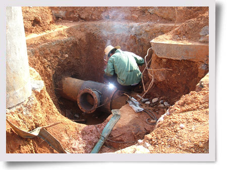 2010年7月5日上午10:30,湖南湘東化工機(jī)械有限公司生產(chǎn)用水管與攸縣自來水管實現(xiàn)合攏,這標(biāo)志著該公司結(jié)束了39年的自供水,自來水供水正式交由地方政府管理。 圖為水管合攏的現(xiàn)場。(王慧卉)