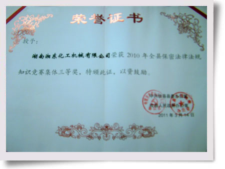 2011年3月17日,從攸縣縣委辦公室、攸縣人民政府辦公室傳來喜訊,我公司在2010年11月30日進行的全縣保密法律法規(guī)知識競賽中榮獲集體三等獎,獲得縣委、縣政府的表彰。
