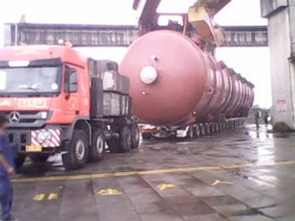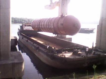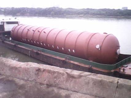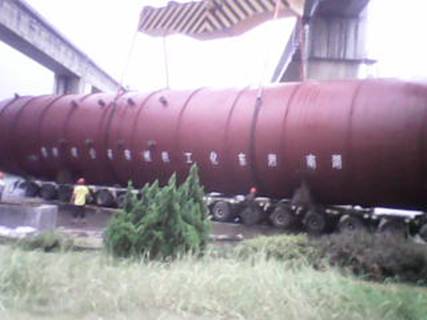 2012年7月16日,在湖南衡陽白沙洲千噸級碼頭,由我公司制造完工的上海金山石化項(xiàng)目丙烯塔順利發(fā)貨。該設(shè)備共兩臺,每臺總長度為65000mm,直徑為5500mm,重量為566噸。