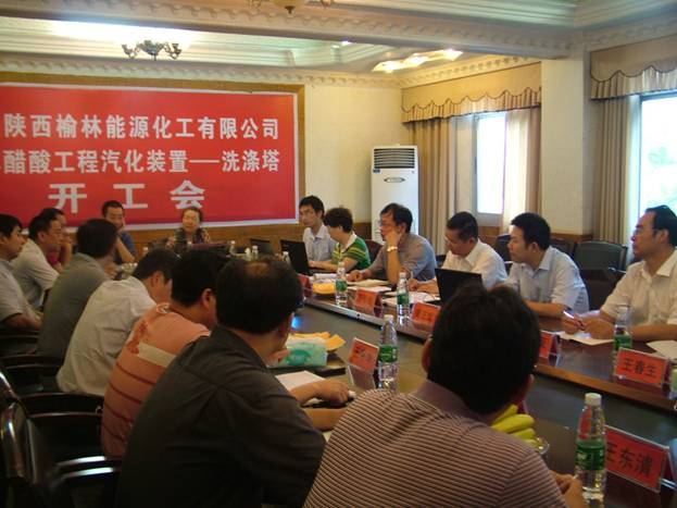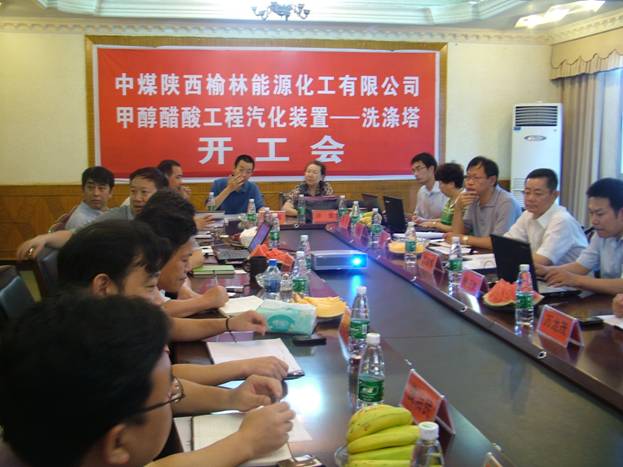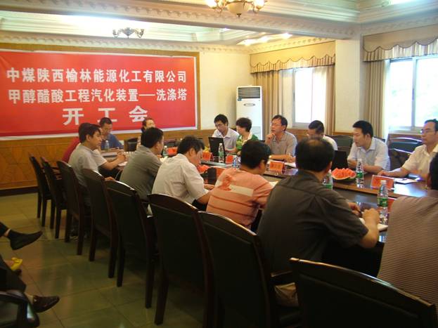 2012年7月19日,在我公司二樓會議室舉行了中煤陜西榆林能源化工有限公司甲醇醋酸工程汽化裝置—洗滌塔開工會儀式。中煤陜西榆林能源化工有限公司副總工程師高亞樓、項(xiàng)目經(jīng)理周正龍、生產(chǎn)經(jīng)理王春生、機(jī)動部副經(jīng)理萬龍茂、項(xiàng)目管理部副經(jīng)理劉淑,中國天辰工程有限公司采購經(jīng)理王大志、設(shè)計(jì)經(jīng)理龔劍、采購經(jīng)理崔清云、驗(yàn)收經(jīng)理許金,三方監(jiān)理李輝副總工程師參加開工會,我公司副總經(jīng)理徐元?dú)J、廖勇、總工程師文建偉,公司相關(guān)生產(chǎn)單位、職能部門負(fù)責(zé)人參加了會議。