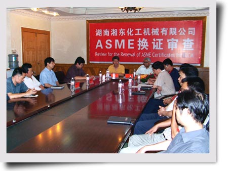 7月10日,美國機(jī)械工程師協(xié)會(huì)(ASME)派出聯(lián)檢組,對(duì)我公司進(jìn)行了ASME U、U2和NBBI(美國鍋爐及壓力容器檢驗(yàn)師總部)R證書換證審查,同意向ASME及NBBI推薦更新我公司U、U2及R授權(quán)證書。 我公司以往取證、換證均采用ASME規(guī)范材料,材料采購周期長、成本高。而此次換證我公司采用ASME 2506號(hào)規(guī)范案例,成功應(yīng)用GB 6654 16MnR材料制作演示產(chǎn)品,為今后鋼印產(chǎn)品采用國產(chǎn)16MnR材料積累了成熟的經(jīng)驗(yàn)。我公司早在1992年就取得了ASME U、U2及NBBI R授權(quán)證書及鋼印,本次是第五次通過換證審查。