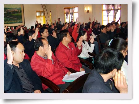2008年4月16日上午10時,在公司科技樓四樓會議室,由工會主席姜衡陽同志主持,召開了二屆一次職工代表大會,正式代表114人,實到代表107人,符合法定開會人數(shù)。 與會代表聽取了董事長兼總經(jīng)理蘇成同志關(guān)于改制工作的說明,并就改制工作的五個方案進行了認(rèn)真的審議和表決。對《企業(yè)改制實施方案》、《企業(yè)改制后內(nèi)部退養(yǎng)人員生活費計發(fā)辦法及基本社會保險繳費基數(shù)確定辦法》、《企業(yè)改制職工分流安置方案》和《企業(yè)改制后新公司聘用人員的辦法》的表決,分別以107票一致通過。對《企業(yè)改制支付員工補償金辦法》的表決,以103票同意,4票棄權(quán)通過。圓滿完成了會議議程。 省石化行管辦副主任方忠,市總工會基層工作部部長袁一之等省市領(lǐng)導(dǎo)到會并講話。