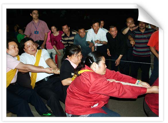 五月十六、十七日晚八點(diǎn),公司燈光球場上燈火輝煌、人聲鼎沸,二○○八年職工拔河比賽在這里熱鬧地進(jìn)行著。比賽共有十二個隊參加,每隊由十五名隊員組成,其中包括三名女隊員。經(jīng)過緊張激烈的預(yù)、決賽,最終汽輪機(jī)分會一隊榮獲冠軍,金工分會奪得第二名,生產(chǎn)分會為第三名。